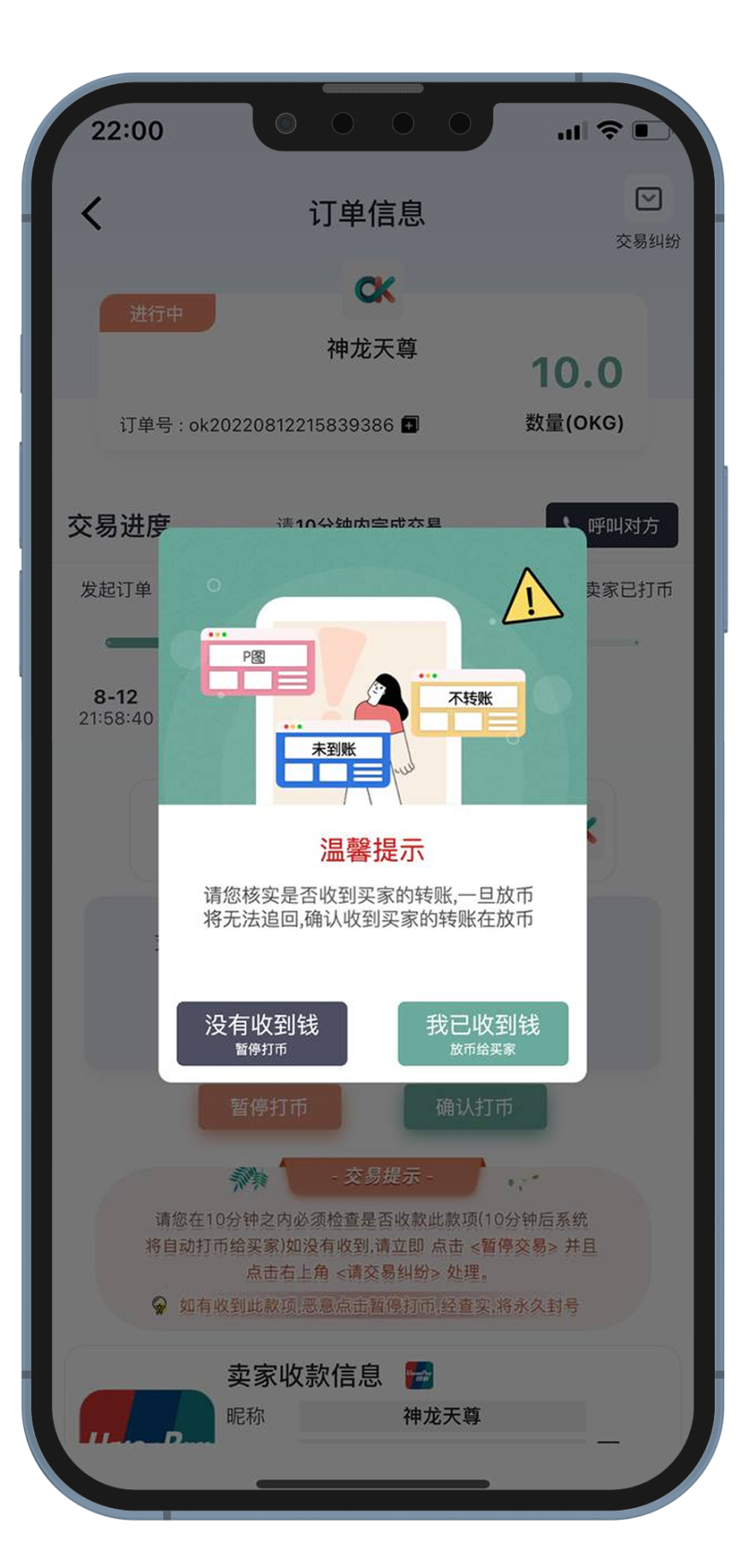 所有买卖交易均在我司APP上进行实时交易,所有私下交易添加好友转账都是骗子,请勿添加! 诈骗手段如下:借支付宝.微信收款二维码风控为由,要求添加好友进行银行转账,骗子通过你的手机号,模仿银行短信到账,诱导用户!请广大用户务必小心谨慎,交易中一定要登陆自己的网银确认到账后 再进行打币!发现异常请及时联系我们24小时在线客服!